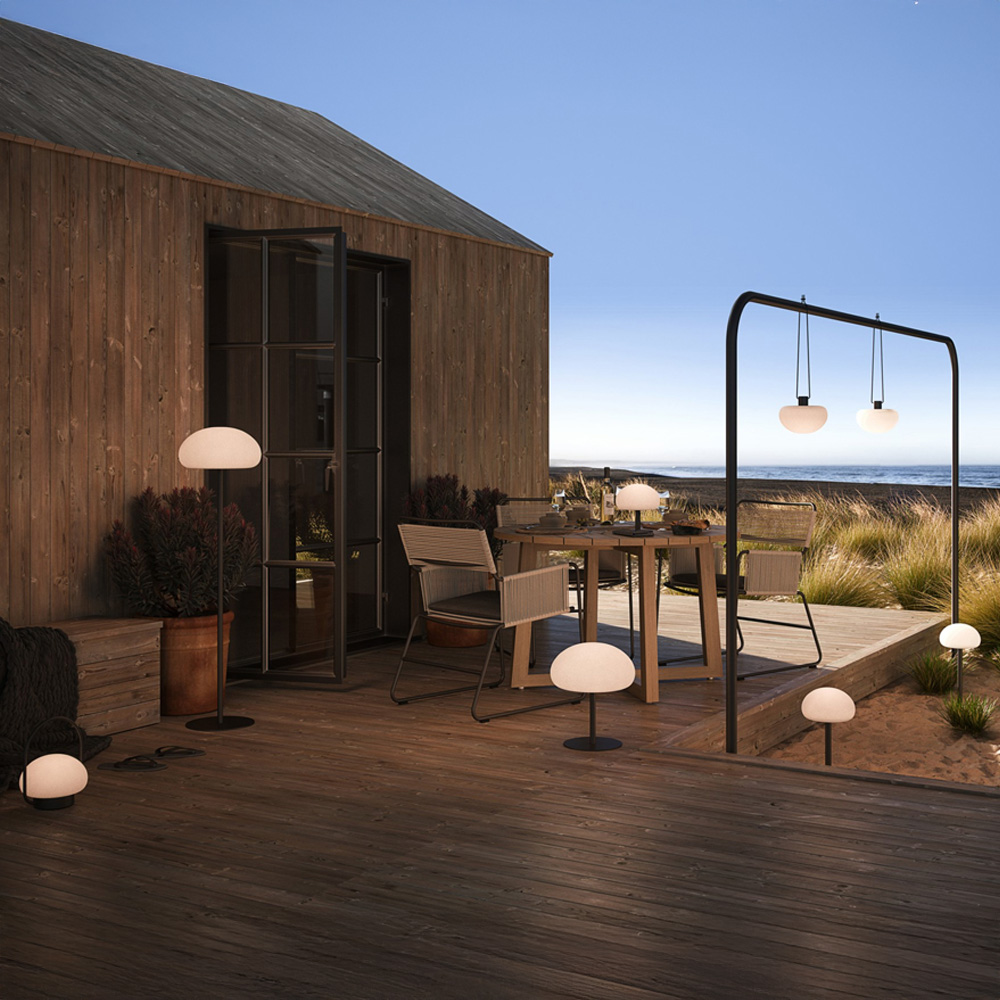 Bring a touch of elegant illumination to your home and garden with the Sponge lamp. Its soft, organic form, inspired by forest sponges, makes it a versatile addition to any setting. Enjoy the freedom of cordless use thanks to the built-in battery, providing up to five hours of light at full brightness, extending even longer on lower settings. Easily adjust the light level in three settings to create the perfect ambience, whether you're highlighting a flowerbed, lining a pathway, or adding a warm glow to your terrace. Crafted from durable, weather-resistant plastic, this charming spike lamp is ready for any location, indoors or out. Conveniently recharge using the included USB cable.