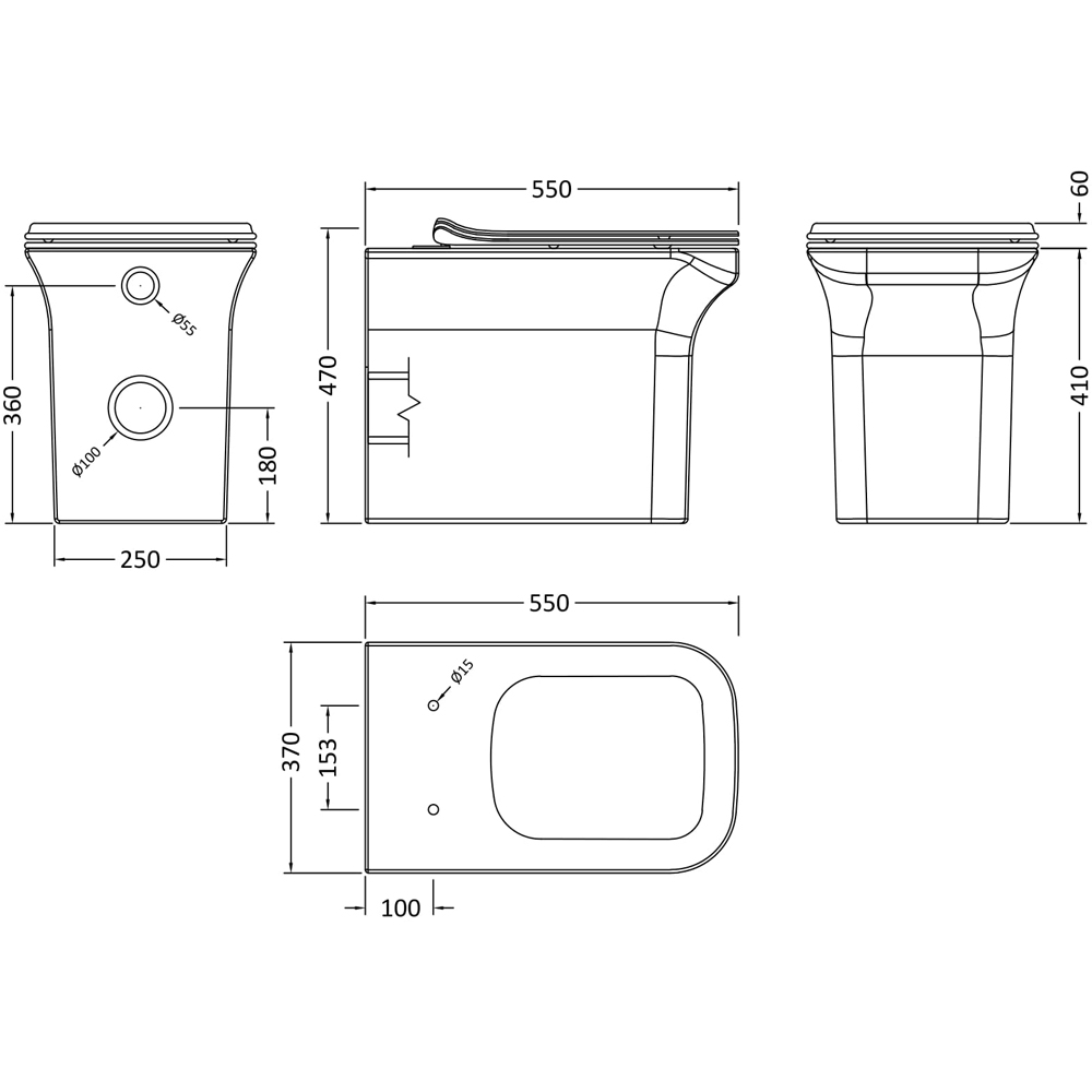 Elevate your bathroom's aesthetic with the Ava White Back to Wall Pan with Seat. Its 370mm dimensions, sturdy material, and durable vitreous China construction ensure lasting quality and a refined look. The rimless design and soft-close seat offer both practicality and a soothing feel, while the sleek, square-curved shape simplifies cleaning and complements diverse interior styles.