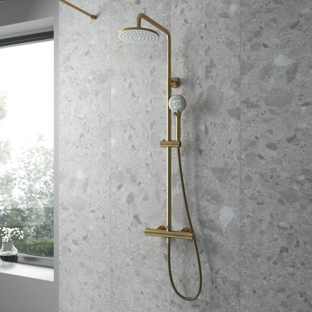 Elevate your showering experience with this luxurious and safe thermostatic bar valve and shower kit. The precise thermostatic control ensures a consistently comfortable temperature, even with fluctuating water pressure, and offers complete thermal protection against scalding. Crafted from high-quality brass and ABS, its brushed brass finish adds a touch of elegance to any bathroom. Suitable for high-pressure systems, unvented mains pressure systems, and shower pumps, this kit provides a superior showering experience.