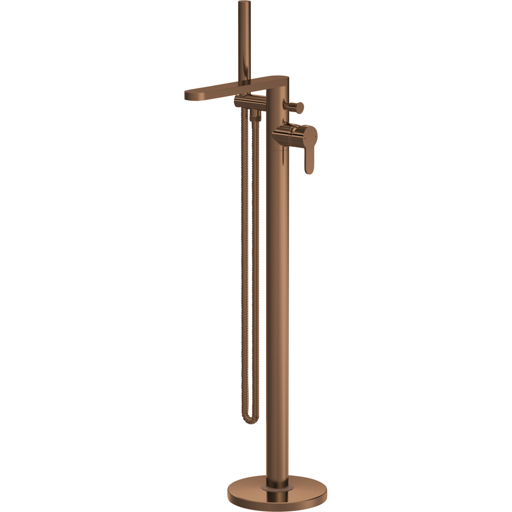 Elevate your showering experience with the brushed bronze freestanding bath shower mixer. Its contemporary brushed bronze finish makes a statement, adding a touch of sophisticated style to any bathroom. The tall, sleek design complements modern fittings, while the ceramic disc technology ensures smooth operation and lasting performance. A perfect blend of form and function for the discerning homeowner.