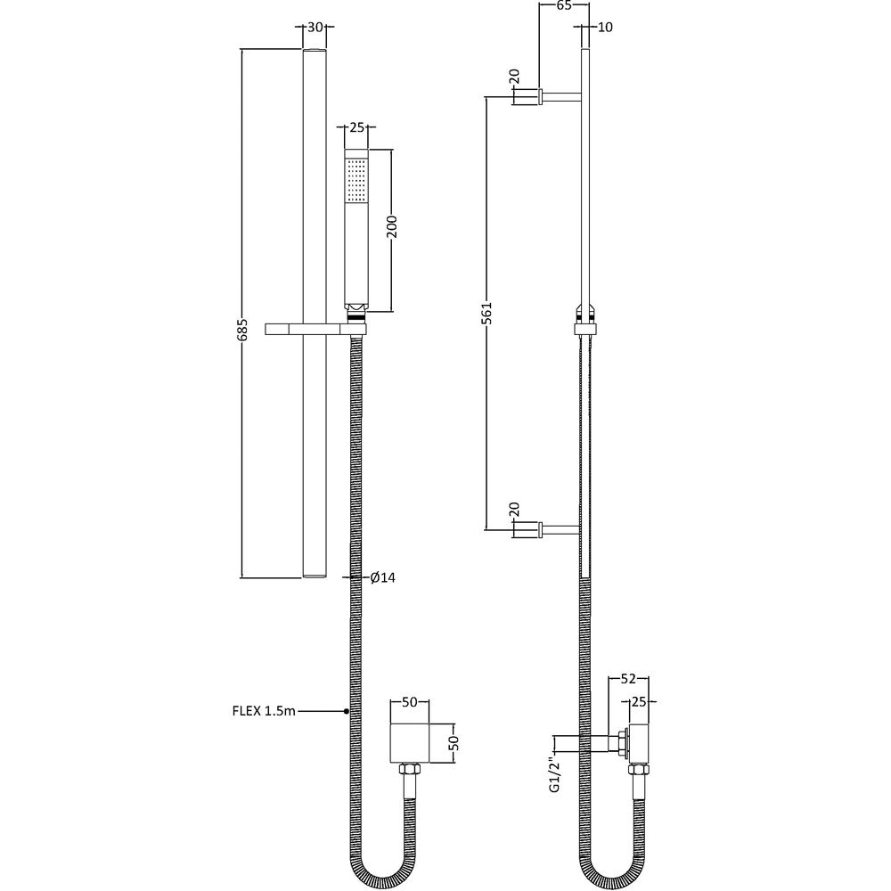 Transform your bathroom with the brushed bronze sheer rectangular slider rail kit. This stylish design effortlessly blends sleek modernity into your shower space. The single-function handset offers both simplicity and sophistication, while the 5m shower hose and slider rail, crafted from durable PVD-coated brass, promise lasting quality. The handset and outlet elbow, constructed from lightweight yet robust PVD-coated ABS, complete this elegant and practical showering solution.