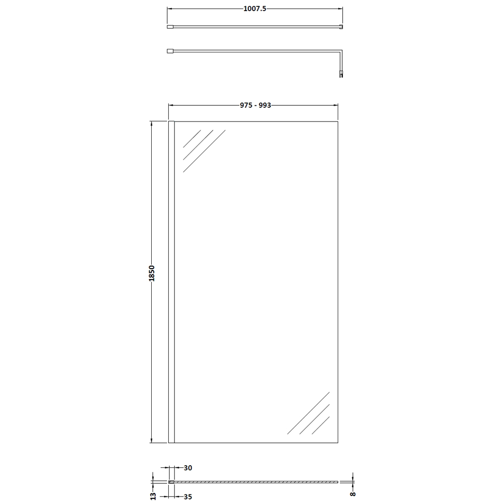 High quality wetroom screen in a luxurious brushed pewter finish. Crafted from 8mm toughened safety glass for durability and strength. Features a brushed pewter support bar for stability and a contemporary touch. Dimensions: 1850 x 1000mm. This item comes with a lifetime guarantee. Shower tray sold separately.