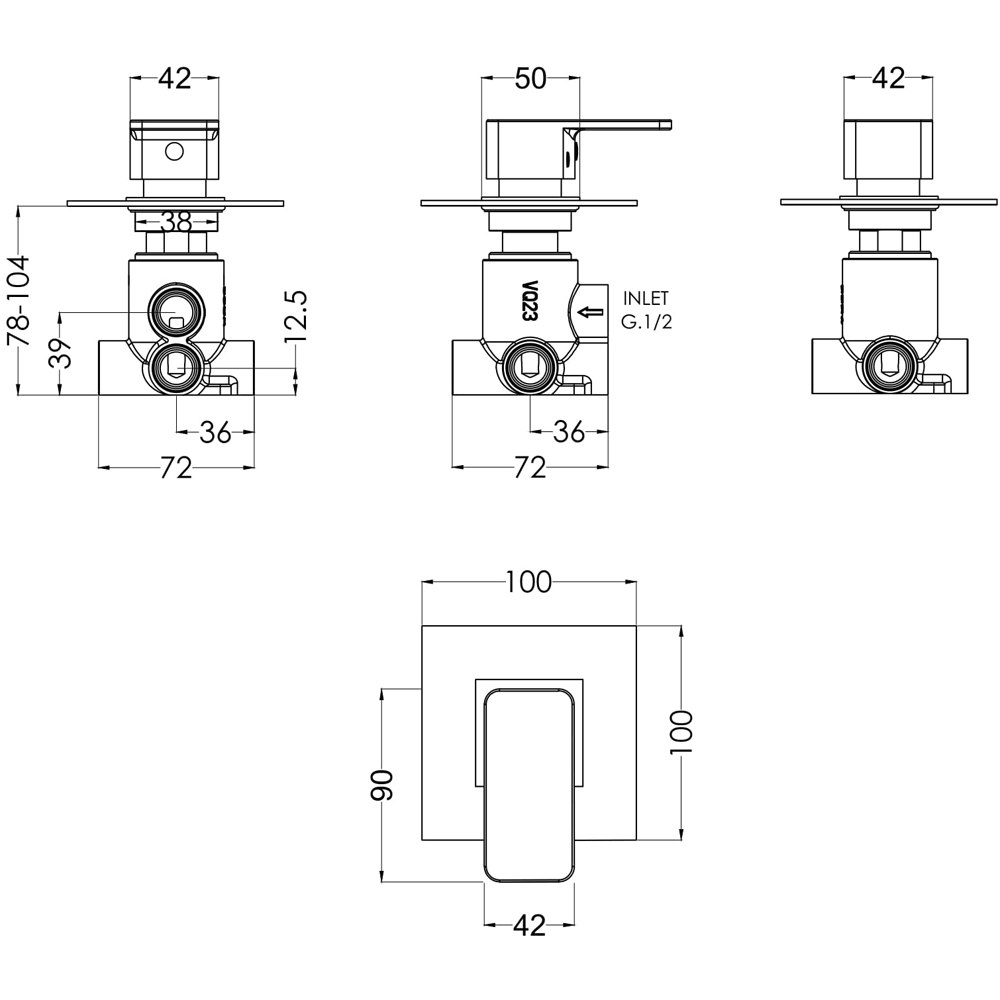 nuie Chrome 2-3-4 Way Concealed Diverter