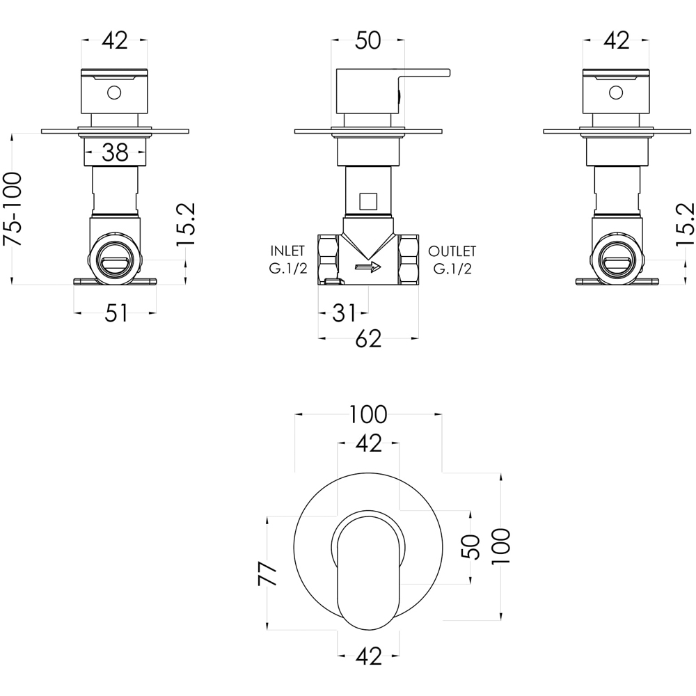 Elevate your bathroom',s style and practicality with the nuie Chrome Concealed Stop Tap. Crafted from high-quality brass, this tap seamlessly integrates with thermostatic temperature controls. Its 1/4 turn ceramic disc technology guarantees smooth, long-lasting performance.