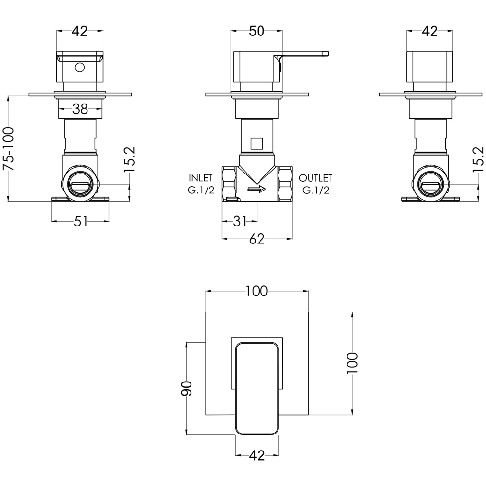 Upgrade your bathroom',s style and functionality with this chrome concealed stop tap. Crafted from high-quality brass, it',s engineered for seamless integration with thermostatic temperature control systems. The 1/4 turn ceramic disc technology ensures smooth, long-lasting operation, providing reliable water flow control. This sleek, modern design offers both practicality and sophisticated aesthetics for your bathroom.