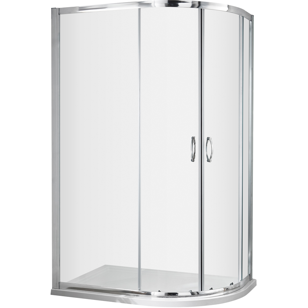 Elevate your bathroom's style and functionality with this sleek 1000mm Chrome Offset Quad Enclosure. This modern enclosure boasts smooth sliding doors for effortless access, and its reversible design allows for left or right-hand installation to perfectly suit your space. Cleaning is a breeze thanks to the quick-release wheels. Crafted from 6mm toughened safety glass for safety and durability, this enclosure features square D-bar handles for a touch of contemporary elegance. Note that the shower tray is sold separately. Enjoy peace of mind with our lifetime guarantee. Dimensions: 1850 x 980 x 780mm.