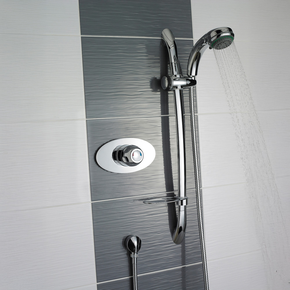 Enhance your showering experience with the Chrome Sequential Thermostatic Shower Valve. Effortlessly control both water temperature and flow, thanks to its intuitive design. Suitable for a variety of systems – unvented supplies, combi boilers, and both gravity and mains pressure – this valve offers exceptional versatility. Its robust single-piece cartridge technology guarantees lasting performance and reliability. Factory pre-set to a safe 43°C, it prevents scalding while maintaining consistent temperature within a +/- 2°C range. Integrated failsafe mechanisms on both hot and cold supplies provide extra peace of mind, especially in high-pressure systems.
