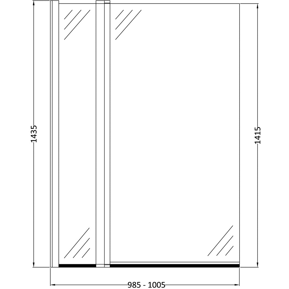 nuie Chrome Square Shower Bath Screen with Fixed Panel 1005mm