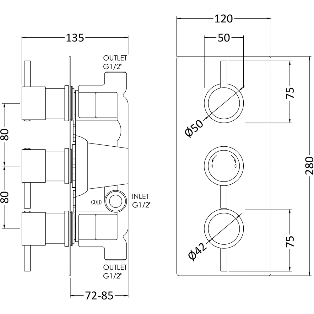 Upgrade your showering experience with the nuie Chrome Triple Thermostatic Shower Valve. Its adaptable design allows for both vertical and horizontal installation, offering flexible placement to suit your bathroom layout. Enjoy precise temperature control, accurate to within +/- 2 degrees, ensuring a consistent shower even with fluctuating water pressure. Built from durable brass and ABS, this valve provides lasting reliability. Comprehensive thermal protection prevents scalding, automatically shutting down if hot or cold water supply is interrupted, meeting all relevant safety standards. A specially designed cartridge resists limescale build-up, making it perfect for hard water areas. Compatible with a wide range of systems – gravity-fed, pumped, unvented high-pressure, or combi-boilers – it delivers excellent flow even at lower pressures. Should your hot and cold water feeds be reversed, simply reverse the cartridge for easy installation.