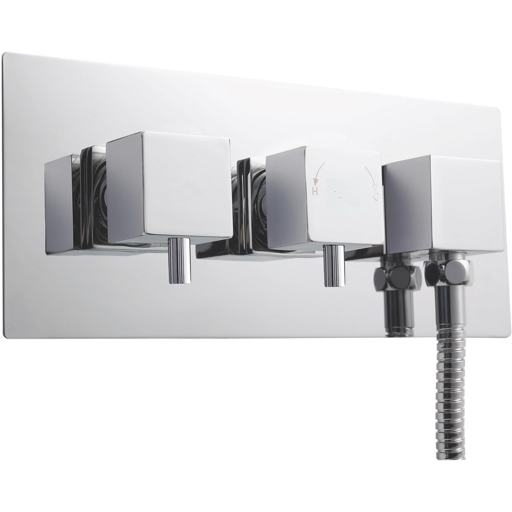 Upgrade your showering experience with the nuie Chrome Twin Thermostatic Shower Valve and Diverter. Precise temperature control, accurate to within +/- 2 degrees Celsius, is maintained even with fluctuating water pressure. Comprehensive thermal protection safeguards against scalding should the hot or cold water supply be interrupted, the valve automatically shuts off for superior safety. A unique, calcium-resistant cartridge ensures longevity, even in hard water areas, and compatibility across all systems – gravity-fed, pumped, unvented, high-pressure, and combi-boiler setups. Enjoy excellent flow rates of 5.5 litres per minute at just 0.1 bar pressure, thanks to a cleverly designed built-in outlet. Furthermore, the fully reversible cartridge eliminates the need for expensive re-plumbing, simply reverse the cartridge for effortless maintenance.