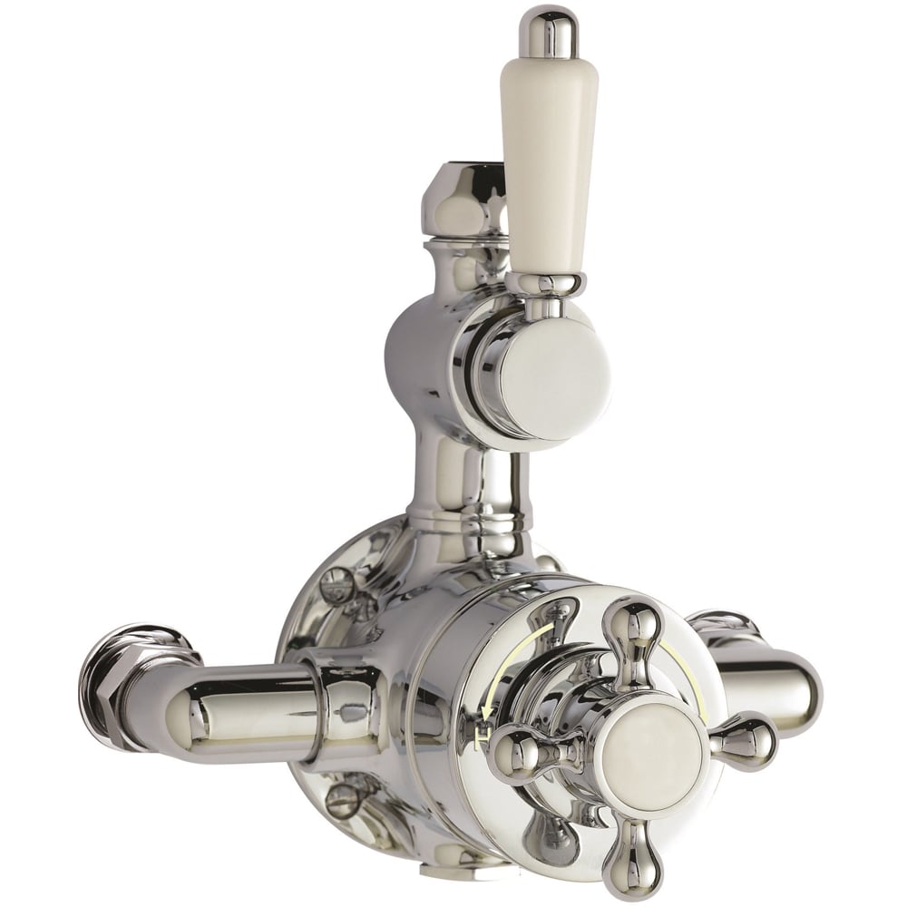 Elevate your showering experience with the nuie Chrome Twin Thermostatic Shower Valve. This versatile valve offers both vertical and horizontal installation options, seamlessly integrating into any bathroom design and adding a touch of Victorian elegance. Precise flow control ensures a consistent water stream, while the thermostatic design maintains temperature accuracy within +/- 2-3 degrees, even with fluctuating water pressure. Complete thermal protection is included, the valve automatically shuts off if either hot or cold water supply is interrupted, preventing scalding. The unique, calcium-resistant cartridge simplifies maintenance, especially in hard water areas, and is fully reversible, eliminating the need for re-plumbing if hot and cold supplies are reversed – simply remove, rotate 180°, and replace. Compatible with all water systems, from gravity-fed to high-pressure combi-boilers, this valve delivers excellent flow rates even at low pressure. Crafted from durable solid brass with a luxurious chrome finish, it’s built for longevity and enhances the aesthetic appeal of your shower.