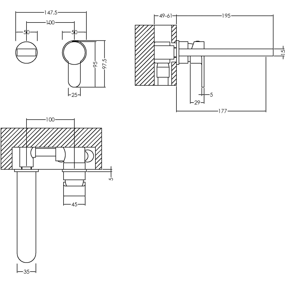 nuie Chrome Wall Mounted 2 Tap Hole Basin Mixer