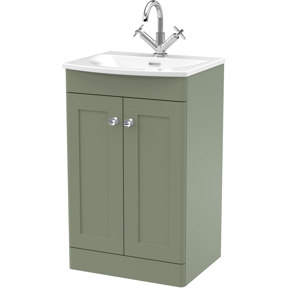 nuie Classique 2 Door Satin Green Floor Standing Unit and 1 Tap Hole Curved Basin 500mm