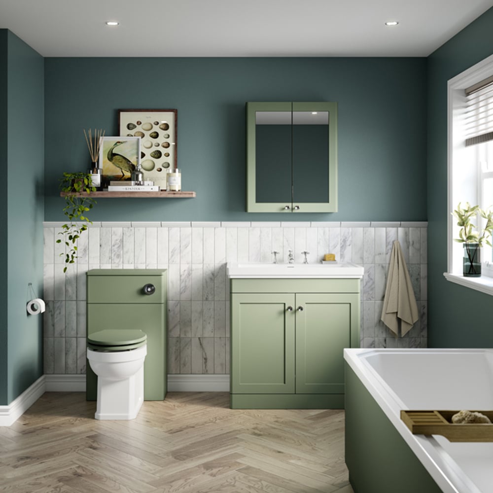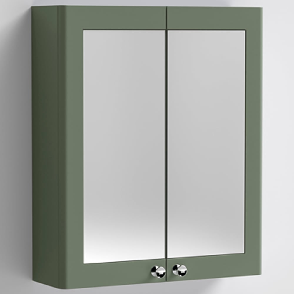 nuie Classique 2 Door Satin Green Wall Hung Mirror Cabinet