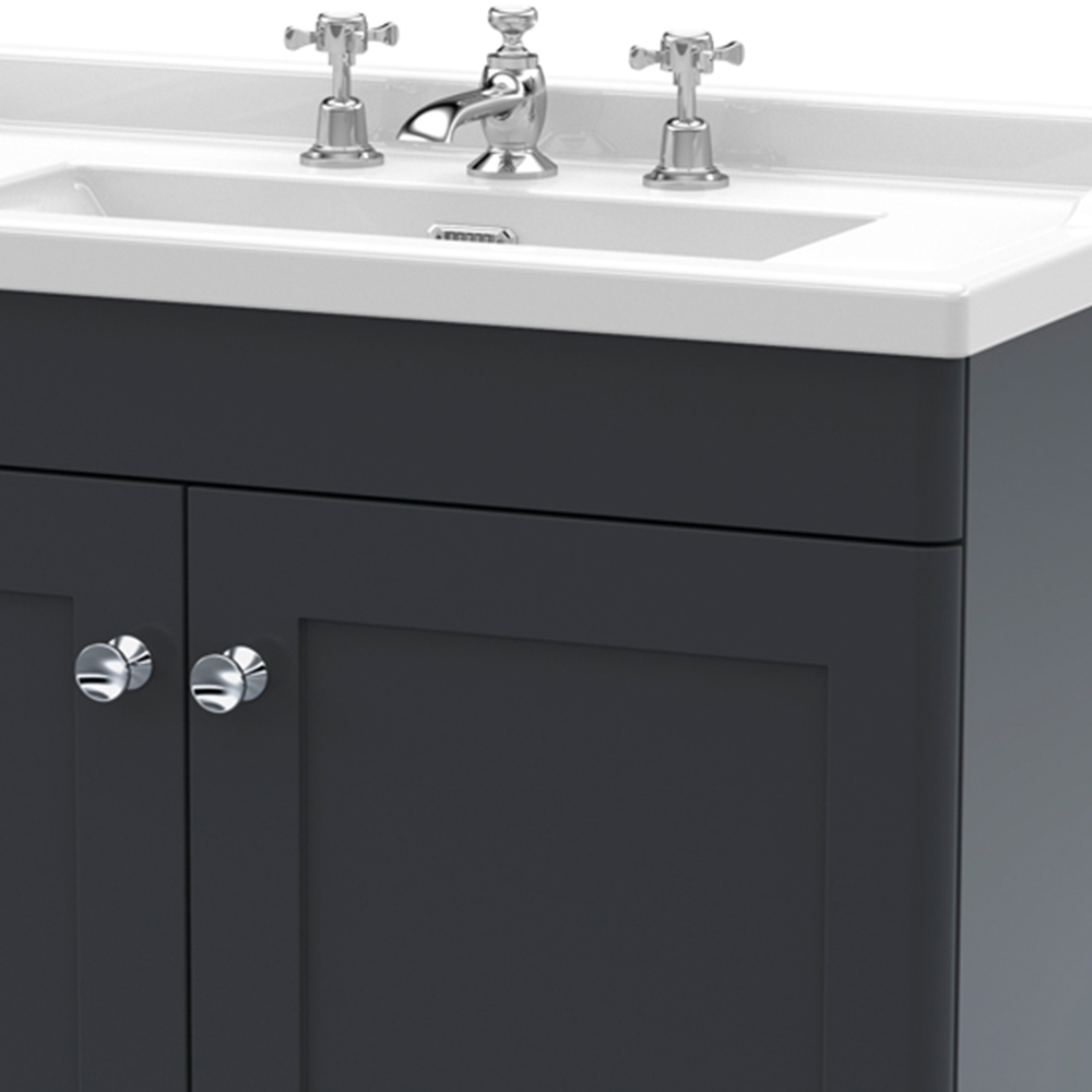 nuie Classique 2 Door Soft Black Floor Standing Unit and 3 Tap Hole Fireclay Basin 800mm
