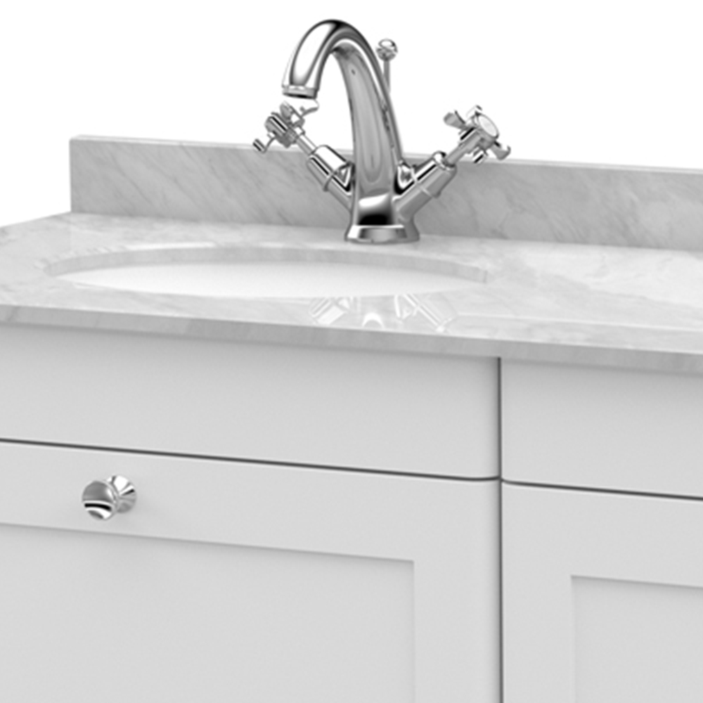 nuie Classique 2 Drawer Satin White and Grey Wall Hung Unit and 1 Tap Hole Marble Basin 1200mm