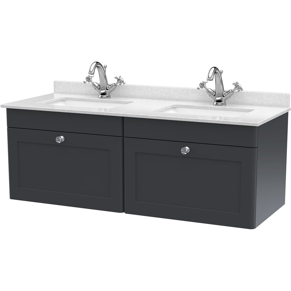 nuie Classique 2 Drawer Soft Black and White Wall Hung Unit and 1 Tap Hole Marble Basin 1200mm