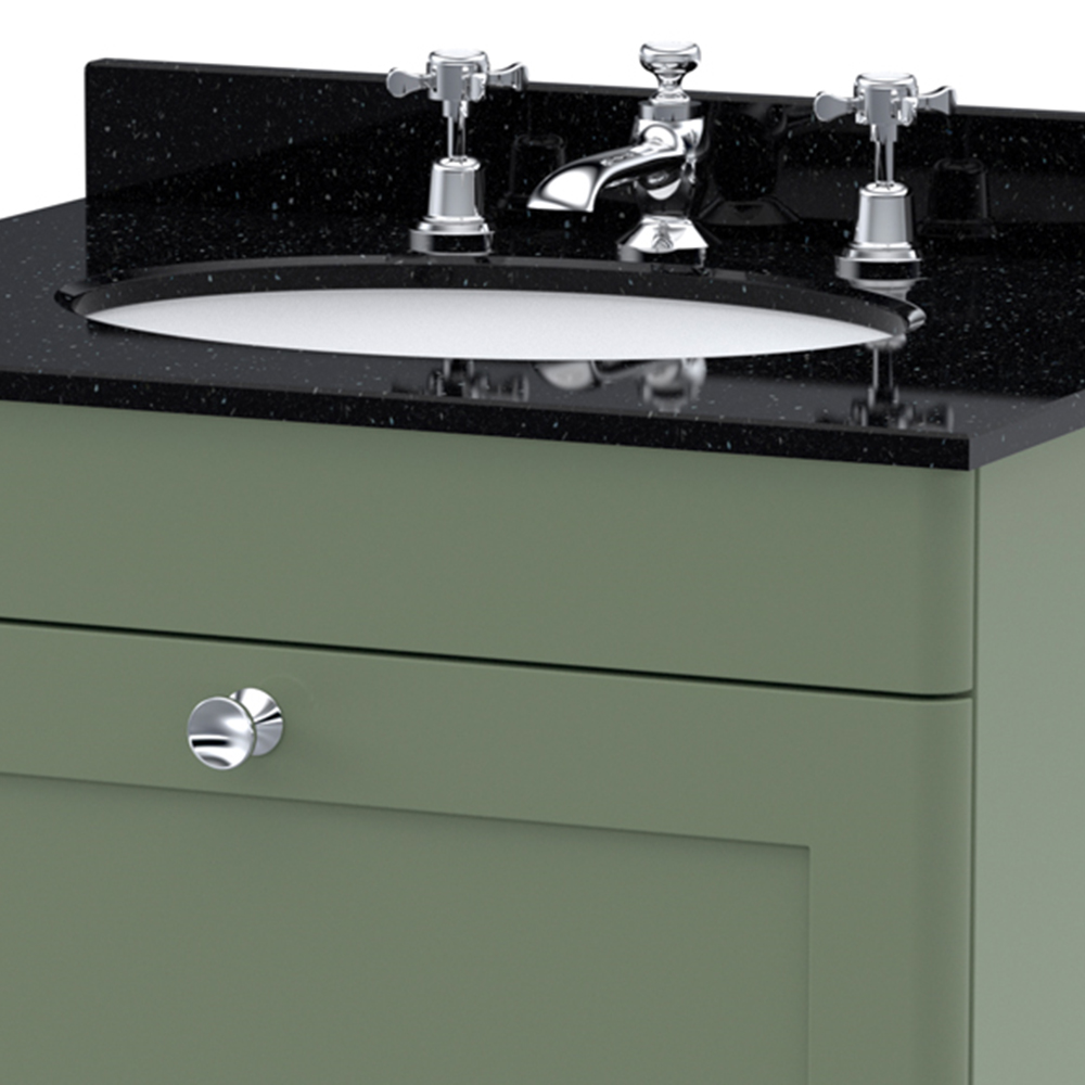 nuie Classique Single Drawer Satin Green and Black Wall Hung Unit and 3 Tap Hole Marble Basin 600mm