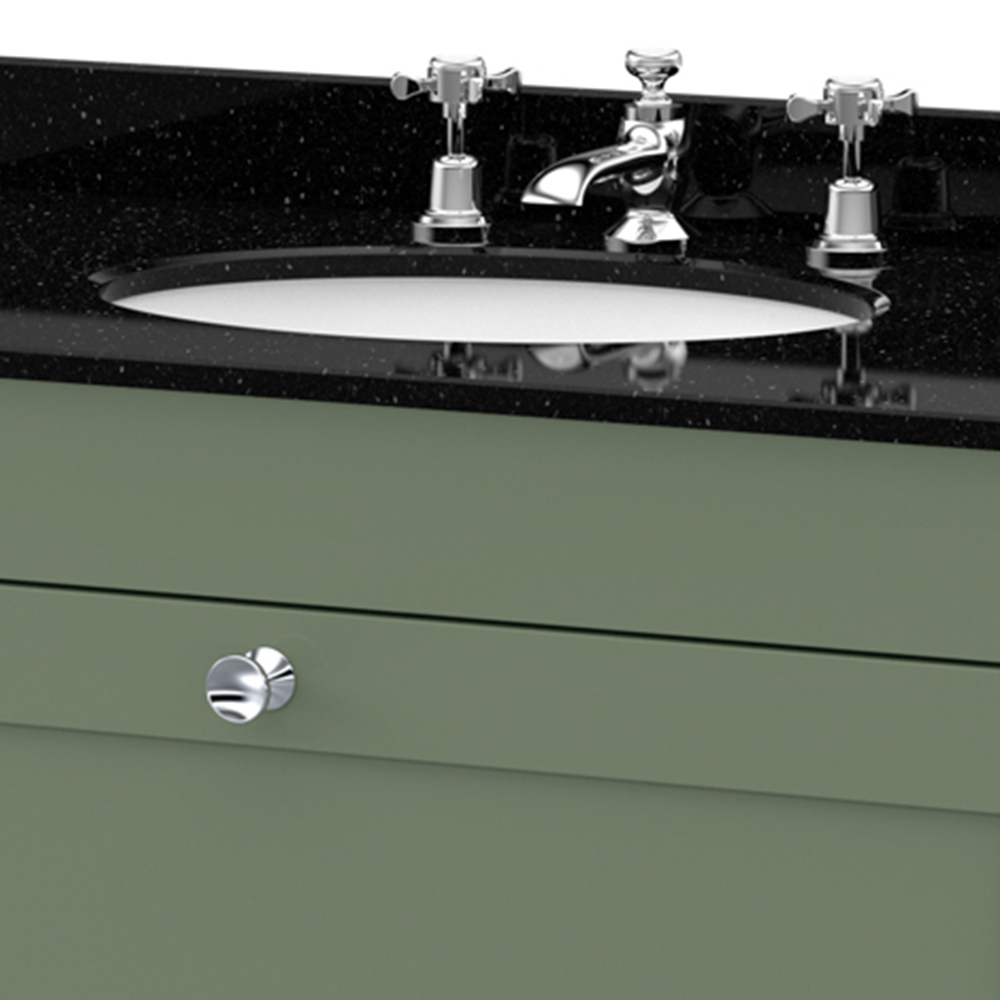 nuie Classique Single Drawer Satin Green and Black Wall Hung Unit and 3 Tap Hole Marble Basin 800mm