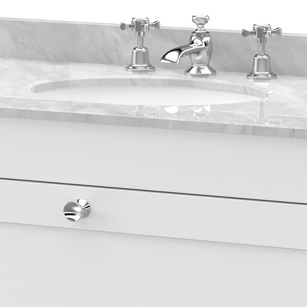 nuie Classique Single Drawer Satin White and Grey Wall Hung Unit and 3 Tap Hole Marble Basin 800mm