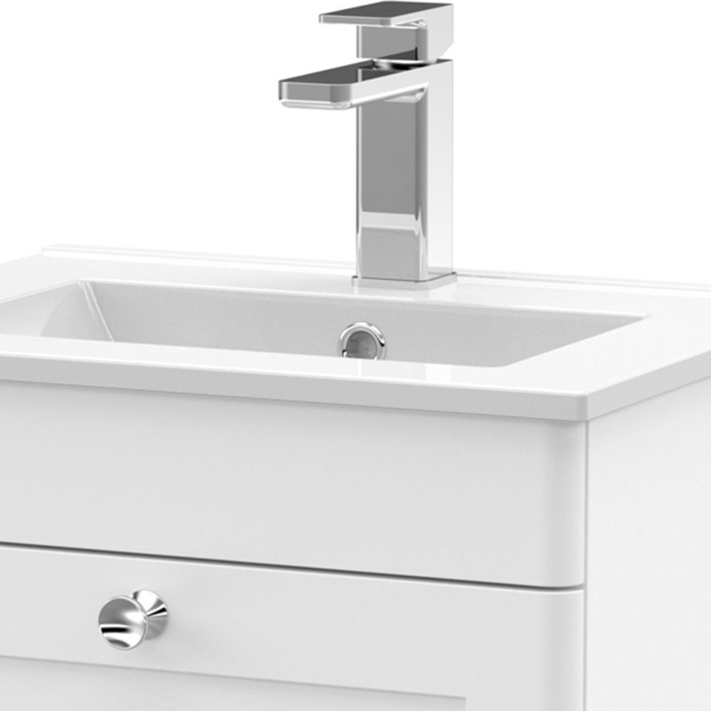 nuie Classique Single Drawer Satin White Wall Hung Unit and Minimalist Ceramic Basin 500mm