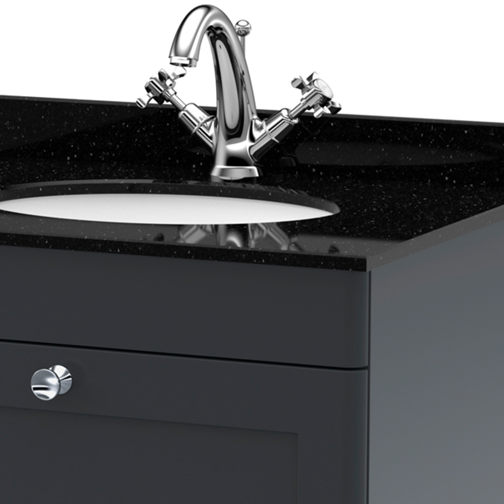 nuie Classique Single Drawer Soft Black Wall Hung Unit and 1 Tap Hole Marble Basin 600mm