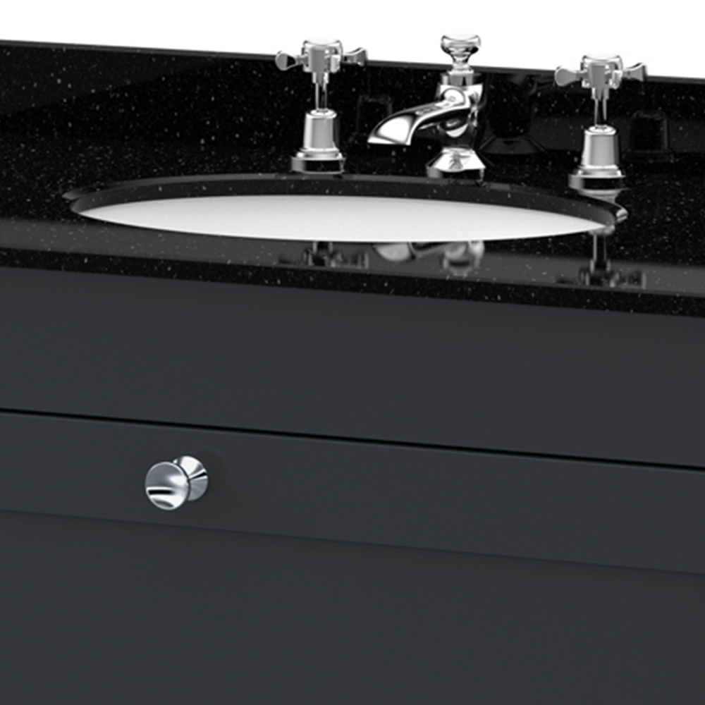 nuie Classique Single Drawer Soft Black Wall Hung Unit and 3 Tap Hole Marble Basin 800mm