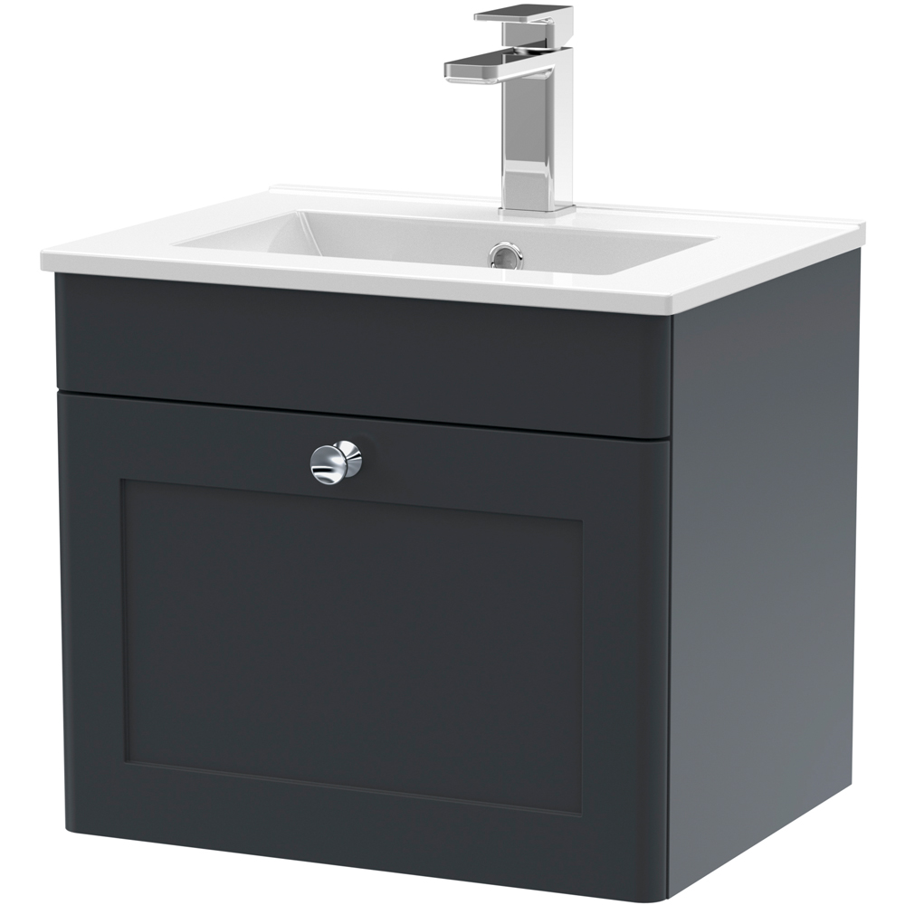 nuie Classique Single Drawer Soft Black Wall Hung Unit and Minimalist Ceramic Basin 500mm