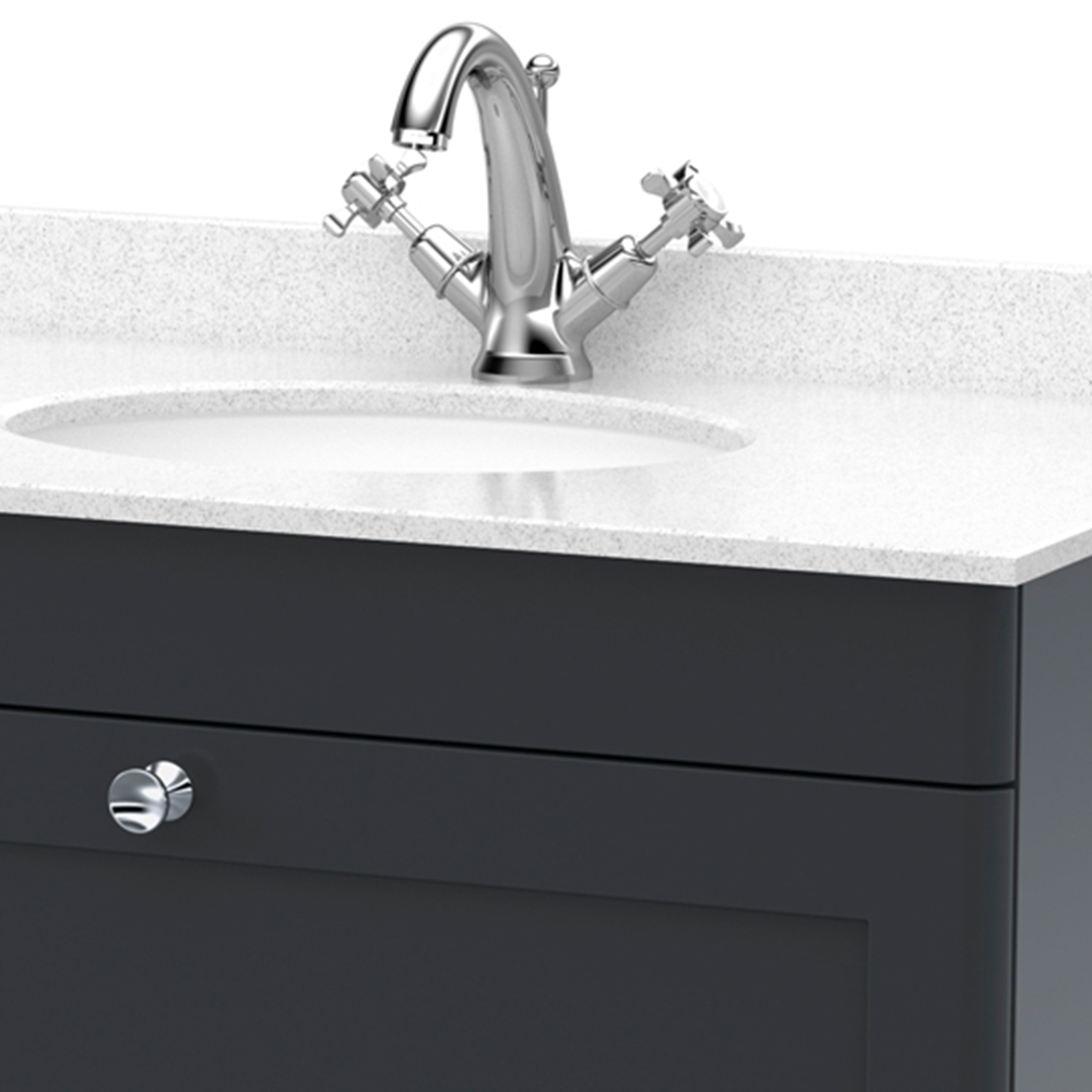 nuie Classique Single Drawer Soft Black and White Wall Hung Unit and 1 Tap Hole Marble Basin 800mm
