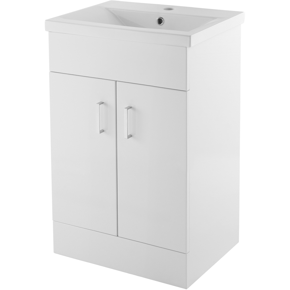 nuie Eden 2 Door Gloss White Floor Standing Vanity Unit with Mid-Edge Basin 500mm