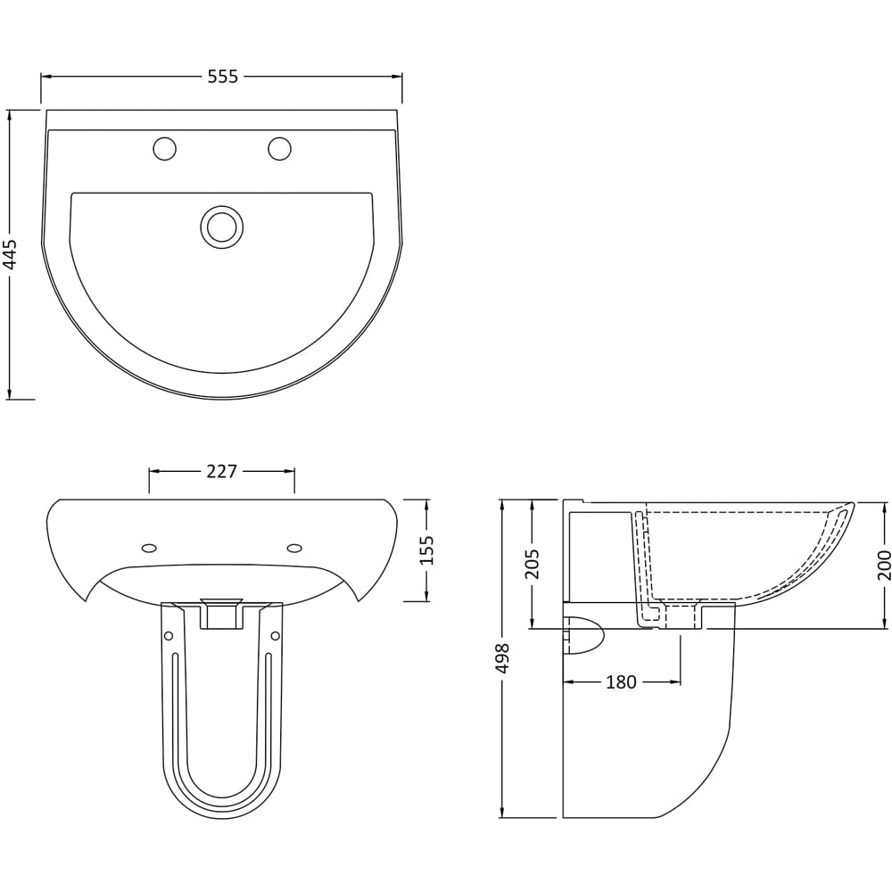 nuie Ivo 2 Tap Hole White Basin and Semi Pedestal 550mm