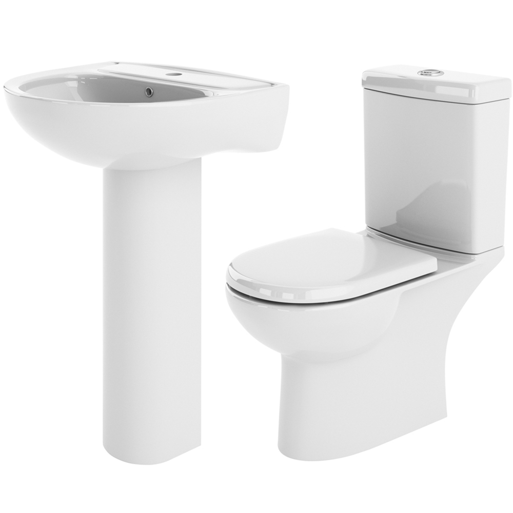 Maximise every inch of your bathroom space with a compact toilet and pedestal bathroom suite designed for small UK bathrooms, blending a close coupled toilet with a full pedestal and soft close seat in crisp white for a modern touch. Enjoy a suite that brings together practicality and style, making it ideal for UK homes looking to refresh their bathroom with a sleek and functional update.