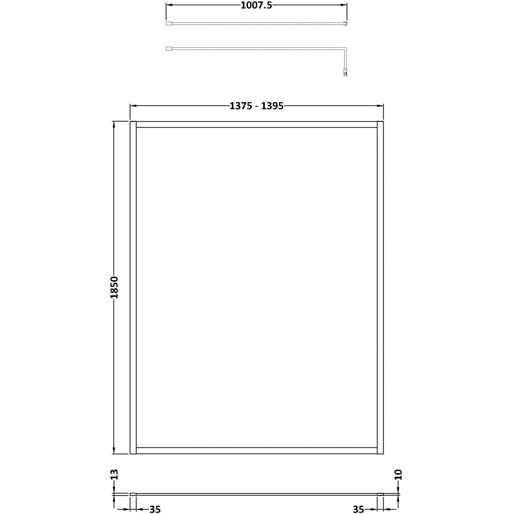 nuie Matt Black Full Outer Framed Wetroom Screen 1850 x 1400mm