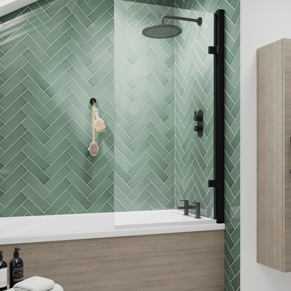 nuie Matt Black Hinged Square Shower Bath Screen 830mm
