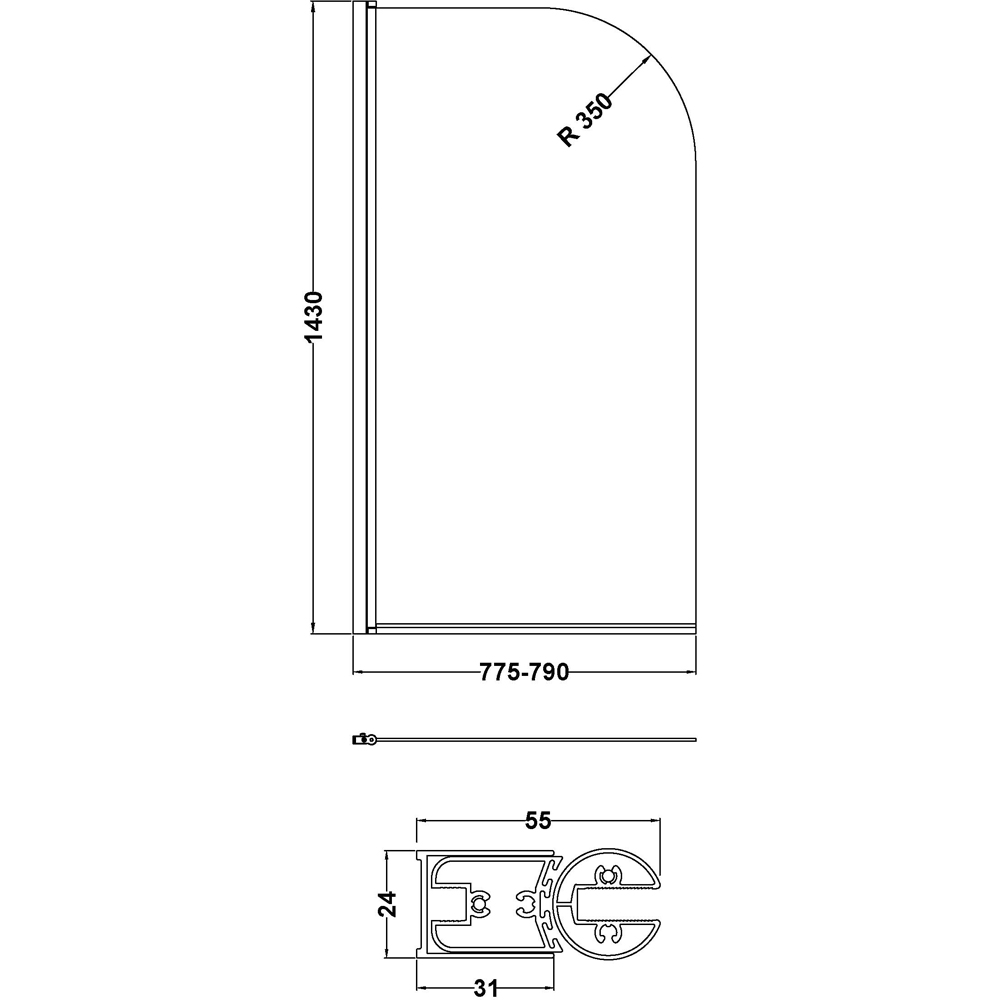Create a stylish showering space within your bath with the nuie Matt Black Round Bath Screen. Its sleek, 785mm design maximizes bathroom space. The reversible screen, crafted from 6mm toughened safety glass, offers a flexible solution to fit any layout. Dimensions: 1430 x 785 x 24mm.