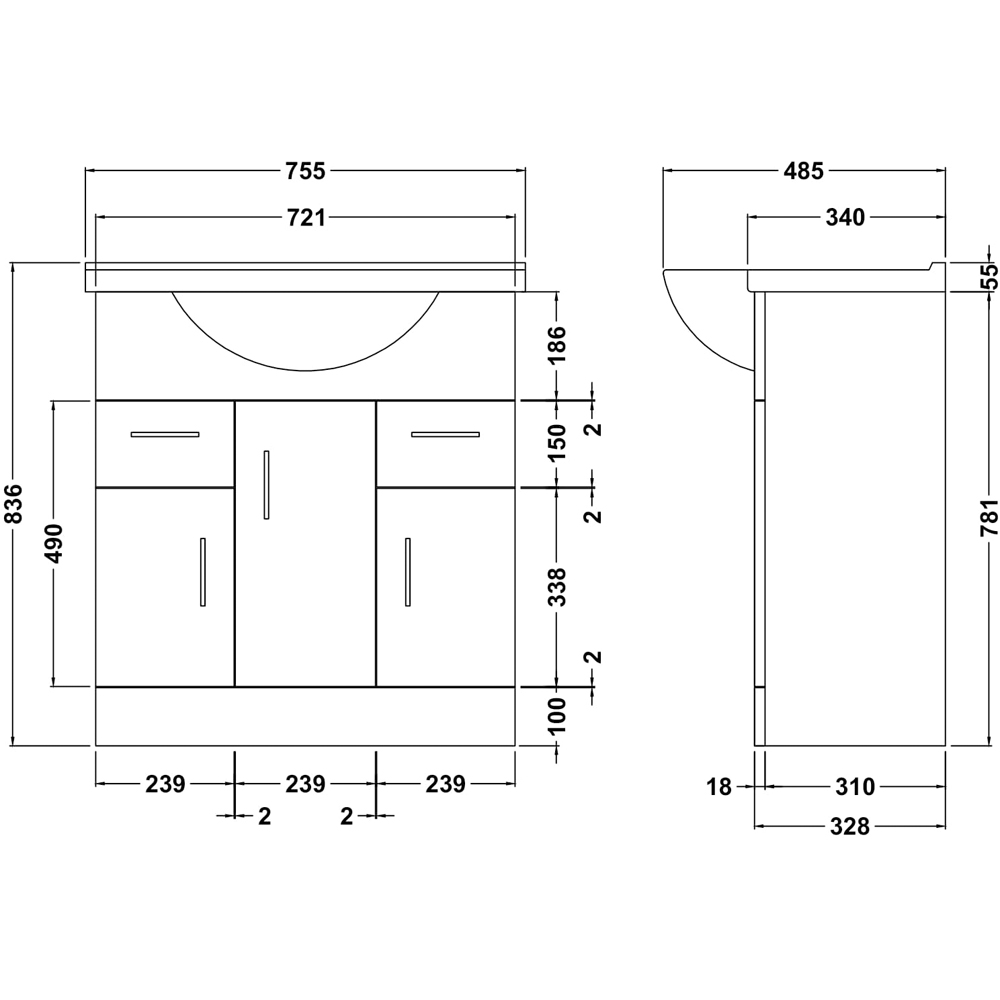 836 x 755 x 485mm