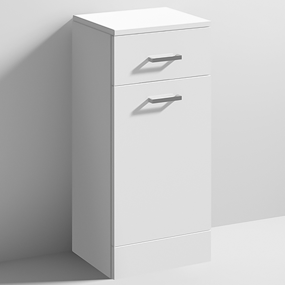 Upgrade your bathroom's style with the Mayford Gloss White Floor Standing Slim Laundry Basket. Its sleek, gloss white finish brings a touch of modern elegance to any contemporary setting. Perfect for busy families, this space-saving unit offers ample storage. The smooth, quiet close of its soft-close drawers ensures lasting quality and minimises wear and tear. At 350mm, it's the perfect size for even the smallest bathrooms.
