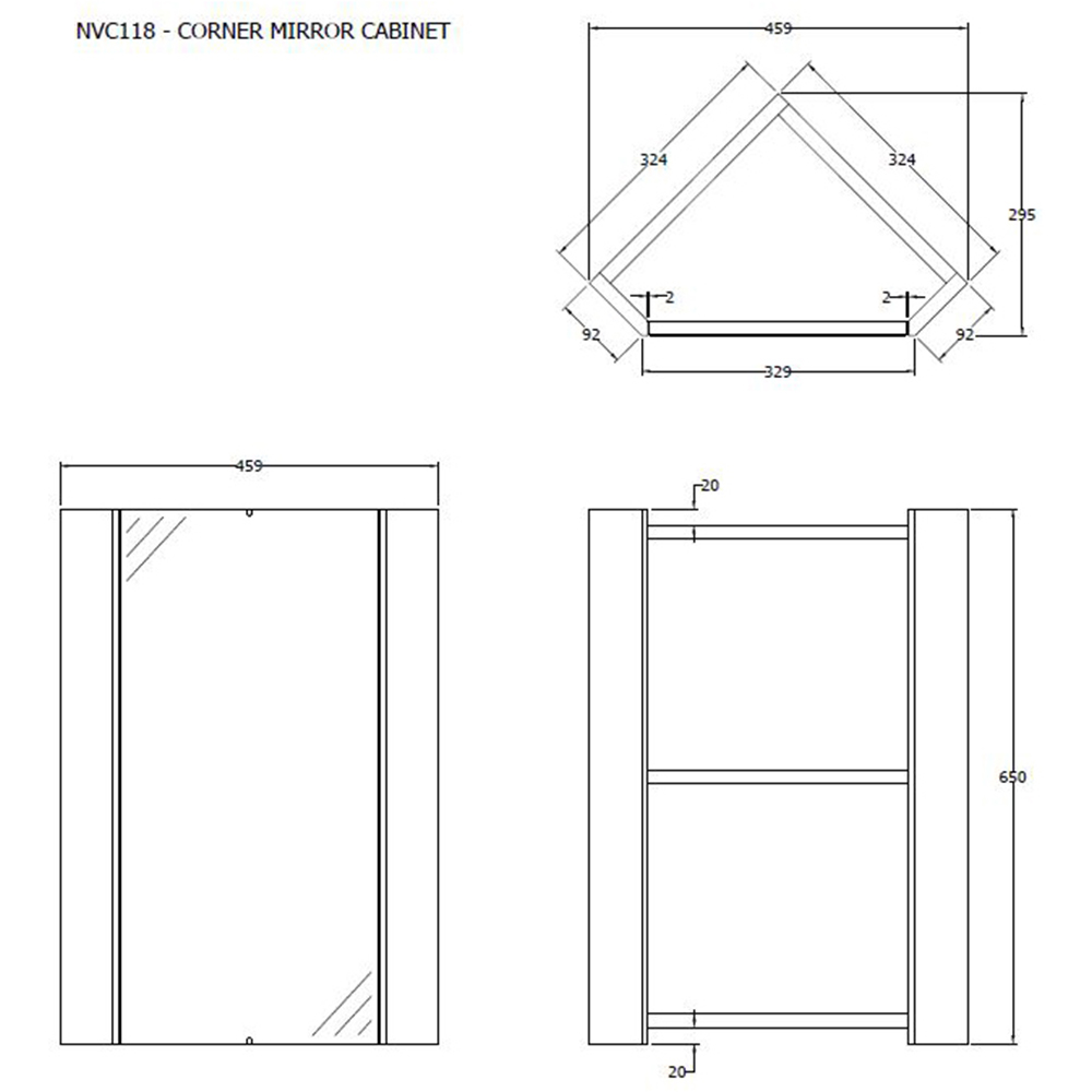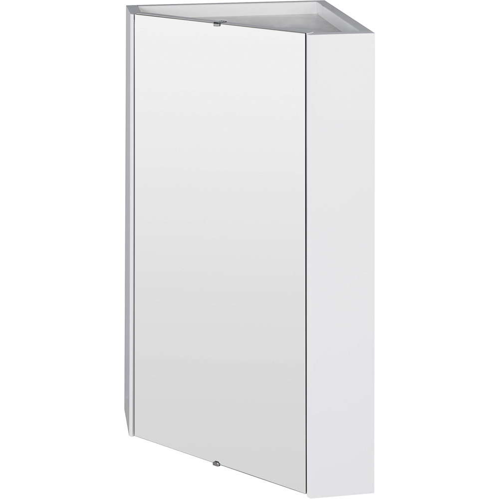 maximise your bathroom's storage and style with the Mayford Single Door Gloss White Floor Standing Wall Hung Corner Mirror Cabinet. Perfect for smaller spaces, its 650 x 324mm dimensions offer a sleek, contemporary design. The single door reveals a convenient internal shelf, providing ample storage. This unit is supplied rigid.