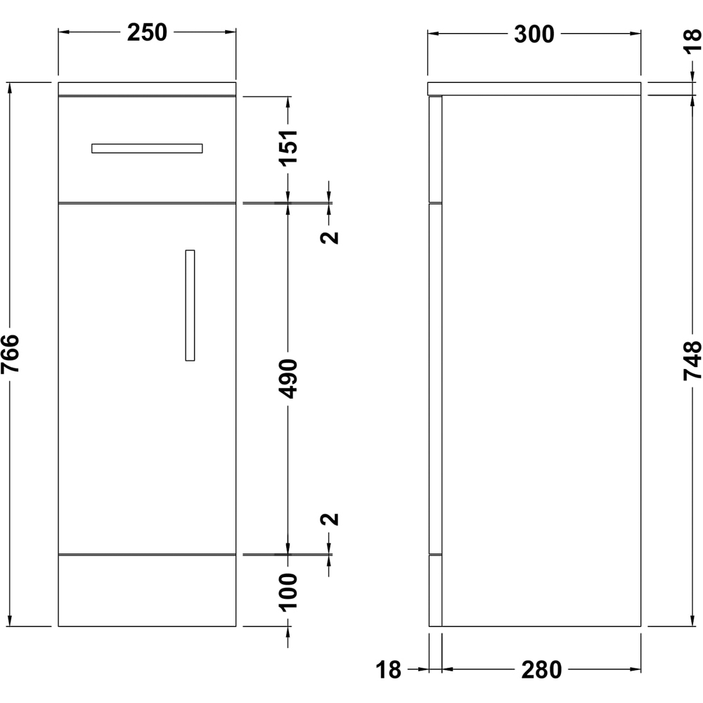 Add a touch of modern elegance to your bathroom with the Mayford single door, single drawer floor-standing cupboard. Its sleek gloss white finish creates a contemporary feel, perfect for busy family bathrooms. This slimline 250mm unit offers ample storage, while the soft-close door and drawer ensure quiet operation and lasting durability.