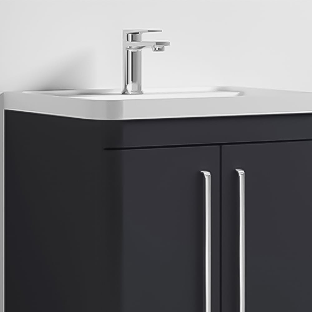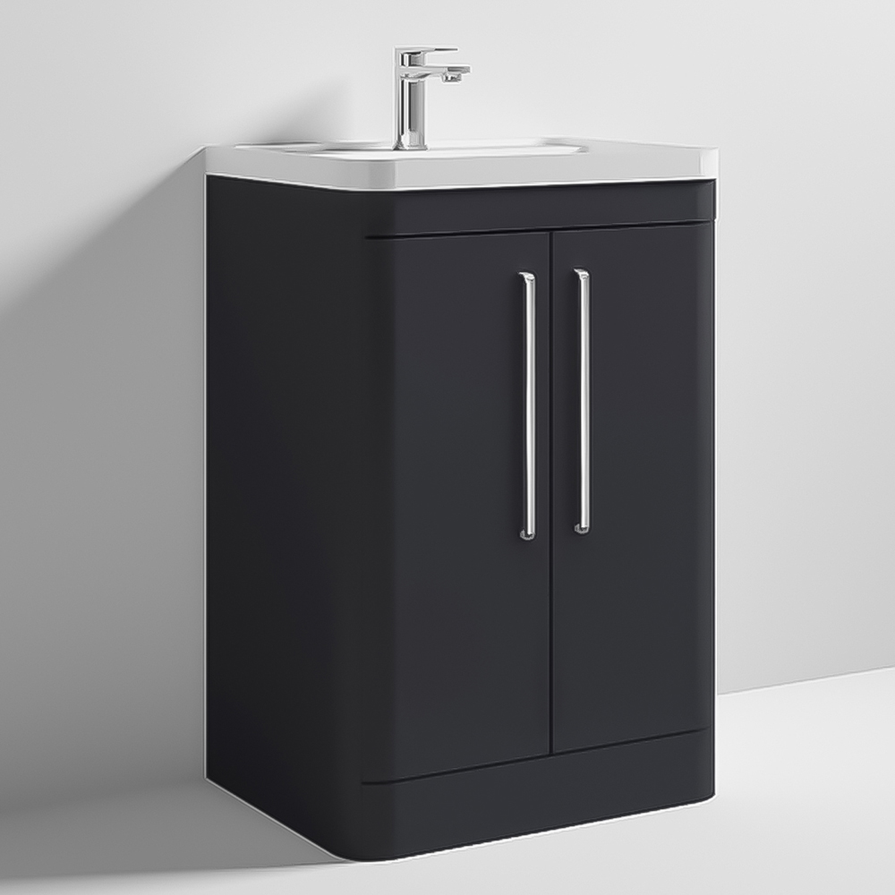 nuie Parade 2 Door Soft Black Floor Standing Vanity Unit and 1 Tap Hole Polymarble Basin 600mm