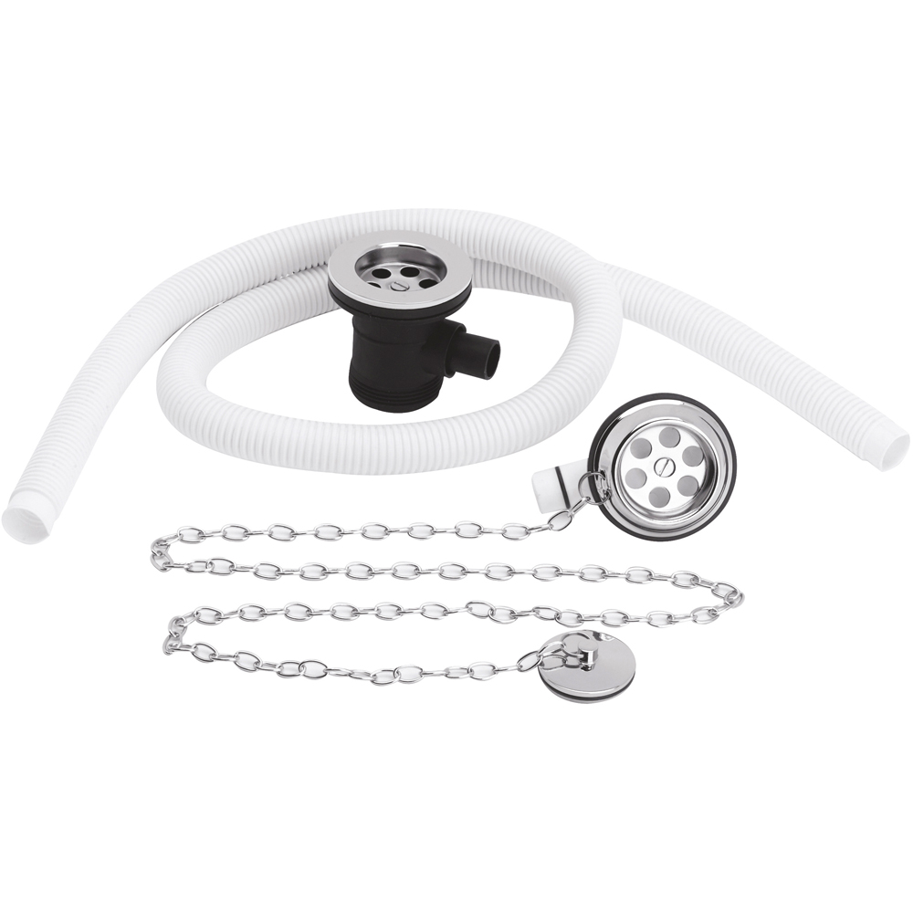 Elevate your bathroom's elegance with this 62mm plug and chain bath waste. Its classic design, featuring a plug-and-chain assembly and hose, seamlessly integrates with various bath styles. Crafted from durable brass for lasting performance and a pristine chrome finish, this waste ensures efficient and hygienic water drainage. Simple installation allows for quick and easy setup, completing your bathroom's refined look. Backed by a one-year guarantee for your peace of mind.