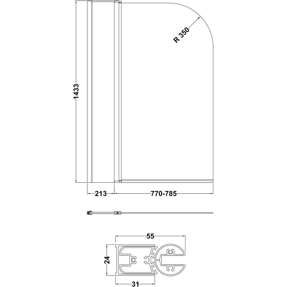 Transform your bathroom with the nuie Polished Chrome Round Bath Screen. This 790mm fixed-panel screen cleverly creates a dedicated showering area within your bath, maximizing space. Crafted from 6mm toughened safety glass for durability and peace of mind, its reversible design ensures a perfect fit for your bath. Ideal for straight baths, this screen offers a sleek, polished chrome finish. Dimensions: 1433 x 790 x 24mm.