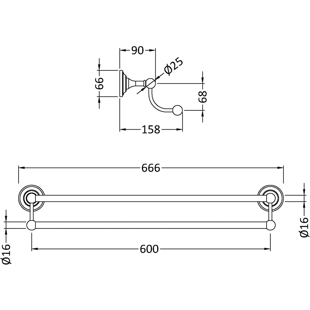 Elevate your bathroom's style and functionality with this chrome double towel rail. Its gleaming chrome finish adds a touch of elegance, while the durable construction ensures years of reliable service. The double bars provide ample space to keep towels neatly organised and readily accessible. Effortless installation and simple maintenance make this rail the perfect addition for a more convenient and stylish bathroom.