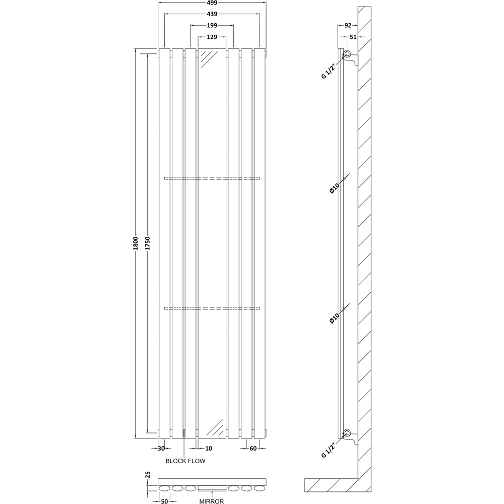 Elevate your bathroom's style and functionality with the Revive High Gloss White Single Panel Radiator with Mirror. This 1800 x 499mm unit seamlessly combines heating and a full-length mirror, transforming your daily routine. The high-gloss white finish and reflective mirror create an illusion of spaciousness and light. Installation is easy with included fixing screws, however, remember to install all pipework only after receiving the radiator. Featuring 1/2 inch British Standard Pipe tappings for compatibility with standard fittings, this radiator ensures a perfect fit. For optimal performance and longevity, use a suitable inhibitor when refilling the system post-installation.