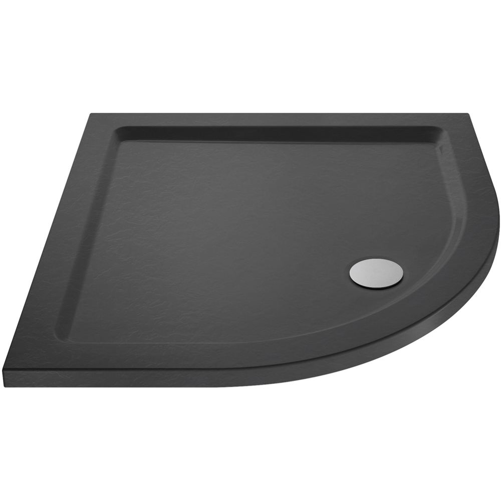 This stylish 900 x 900mm quadrant shower tray brings a touch of modern sophistication to your bathroom. Made from Pearlstone Matrix, a patented material, it',s both remarkably strong and surprisingly lightweight for easy handling and installation. The textured slate grey finish adds a sophisticated, contemporary feel. Please note that the waste and shower panel are sold separately.