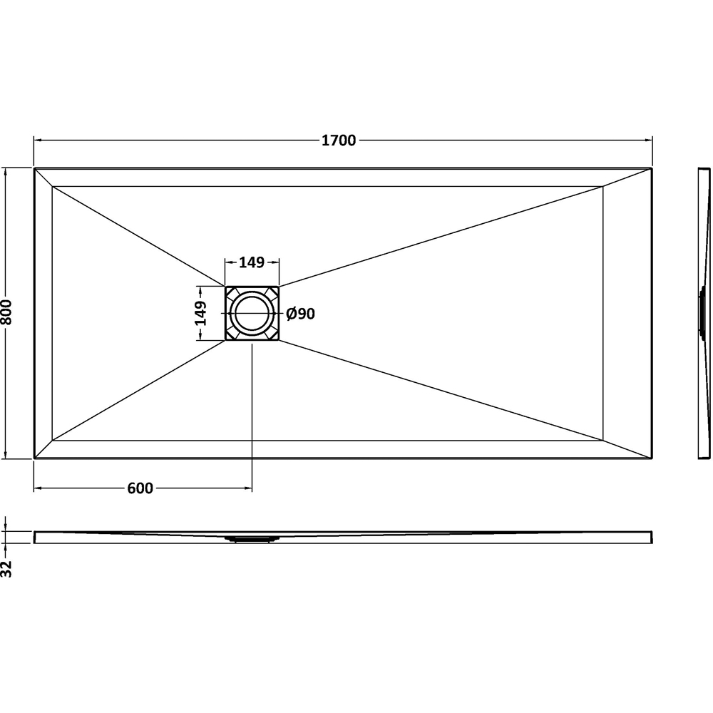 This stylish slate textured shower tray, measuring 1700mm x 800mm, is a perfect choice for contemporary bathrooms. Its slim 32mm profile offers a sleek, modern aesthetic. The non-slip surface ensures safety, while the square waste (sold separately) completes the clean lines of the design.