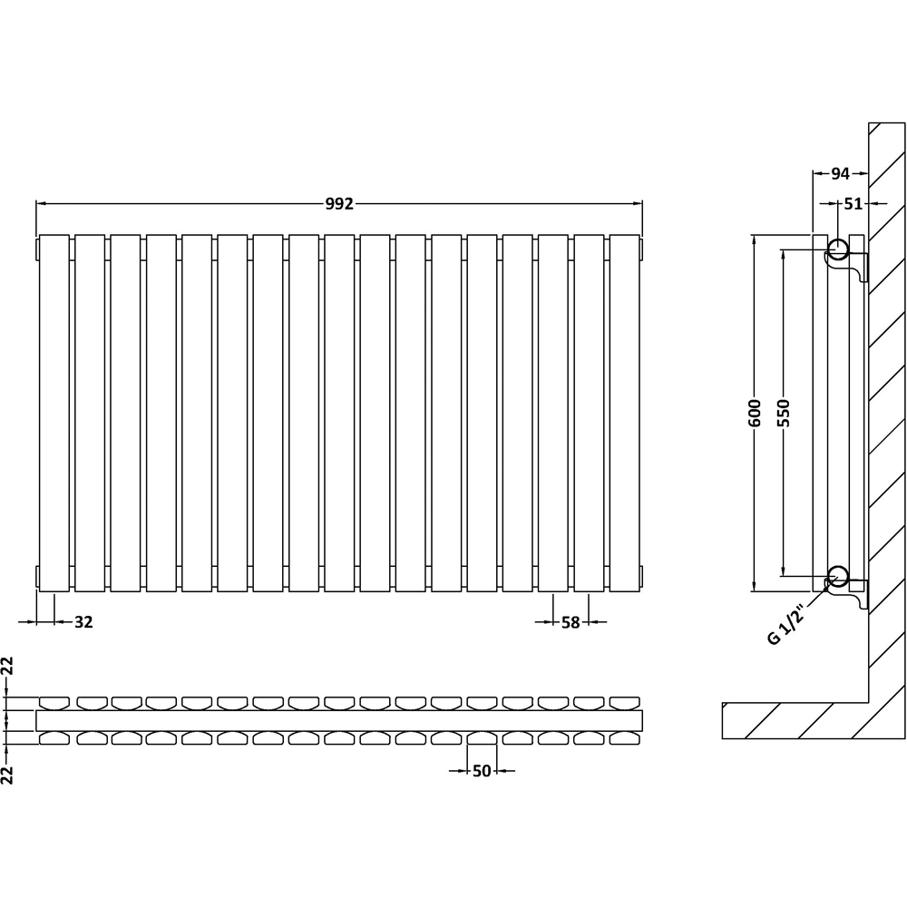 Upgrade your home's heating with the Sloane Horizontal Anthracite Double Panel Radiator. This space-saving design boasts a sleek, classy finish and smooth horizontal bars for efficient, even warmth. Its contemporary style complements any interior, while delivering exceptional heat output. Easy installation is ensured with included fixing screws. Backed by a five-year guarantee, this radiator offers BTU outputs of 1822 at 30°C, 3519 at 50°C, and 4459 at 60°C (equivalent to 534W, 1031W, and 1307W respectively). Dimensions: 600 x 992mm.