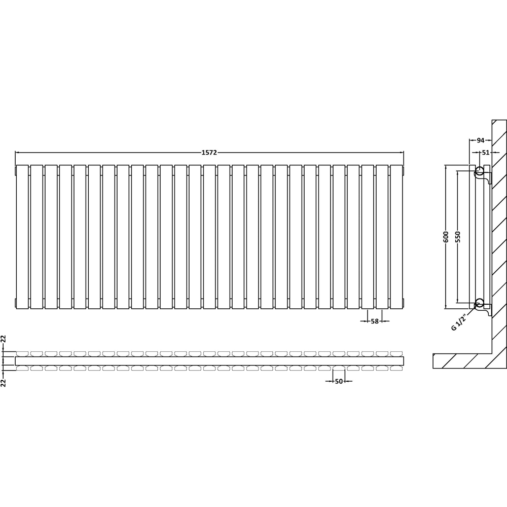 nuie Sloane Horizontal Satin White Double Panel Radiator 600 x 1572mm