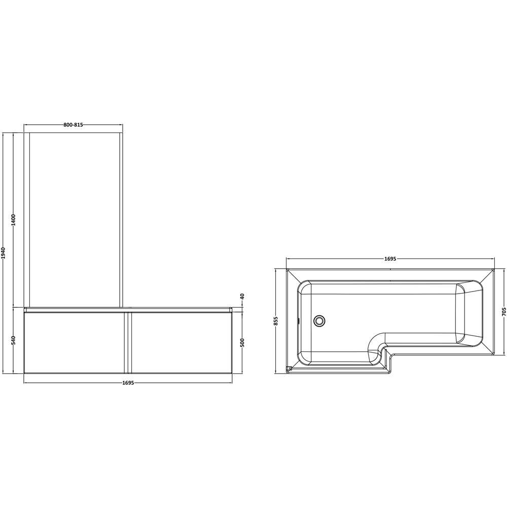Transform your bathroom with this spacious left-hand shower bath. Expertly crafted from durable, sanitary-grade acrylic, this 1700mm square design offers a clean, crisp finish. The set includes a Quattro bath screen and a matching acrylic side panel, ready for straightforward installation (arrives undrilled, with leg set included). Note: end panel sold separately. Backed by a five-year guarantee. Dimensions: H390 x W850 x L1700mm.