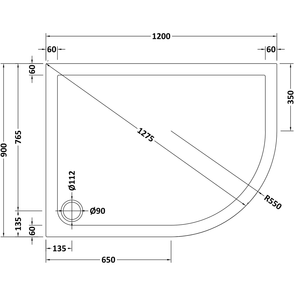 nuie White Offset Quadrant Slimline Right Hand Shower Tray 1200 x 900mm